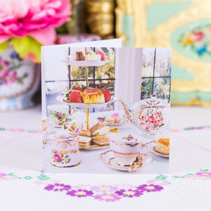 Pack of six delightful notecards and envelopes featuring an image of Afternoon Tea from the Bonny and Blithe vintage tea time archives. Perfect for sending tea party invites or a thank you note to your host.