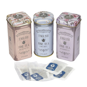Iconic mini vintage floral triple Tea tins featuring unique floral designs in pastel shades. These collectable, super cute mini tins contain a range of our flavoursome English Teas, each one a classic rich, smooth and delicious blend. Traditionally drank in the morning, with breakfast or in the afternoon with sandwiches and pastries, these are 3 tasty brews which can be enjoyed on their own, with a slice of lemon or with the addition of milk and if preferred a little sugar. Perfect to share with friends. An ideal gift.
