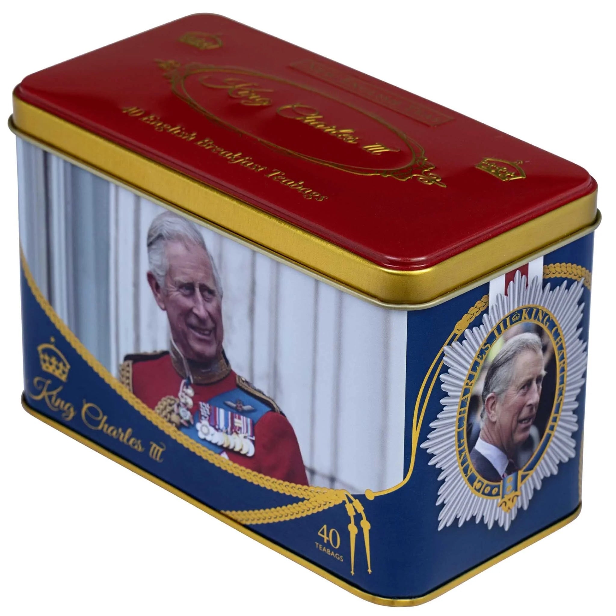 The King Charles III Tea Tin celebrates the accession of King Charles with a luxury commemorative tea tin complete with gold foil detailing, embossing, and includes 40 of our celebrated English Breakfast teabags. Highly collectable, this stylish tea tin contains our popular English Breakfast Tea, a rich, smooth and delicious blend traditionally used in the morning to invigorate the senses shortly after waking. Enjoy on its own or with the addition of milk and if preferred a little sugar, perfect to drink at any time of the day.