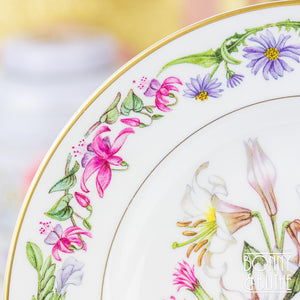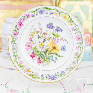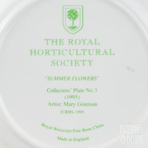 Vintage English bone china plate by Royal Worcester in the Summer Flowers pattern for the Royal Horticultural Society.